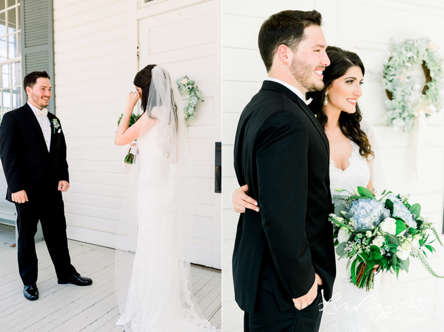 I love a first look! This first look + these white doors with small touches of greenery have me loving them even more!!