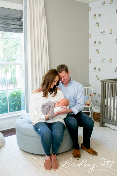 Will’s newborn lifestyle session, held in Jackson, was flawless. He has entered this world with the sweetest mom & dad that love him so very much. And it’s obvious just by the way they grin at him while he sleeps peacefully in their arms. Lauren chose to decorate his nursery with soft blues, whites, and neutral tones. One wall had the cutest ‘birds on a line’ wallpaper that pulled the whole room together perfectly with a natural feel. When I arrived, Will had been fed and was ready for his sleep. He slept throughout most of the newborn session, periodically glancing at us with this beautiful blue eyes. What a sweet baby boy!