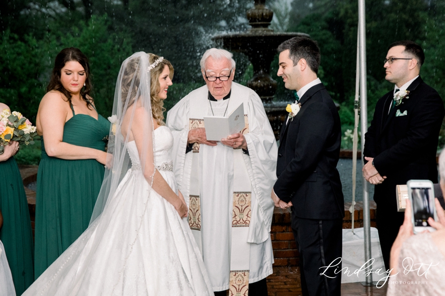 The day was truly a celebration of love despite the unwelcome rain! Everything was held at the Memphis Botanical Gardens, which even on a rainy day was absolutely stunning! Thankfully in between downpours we were able to grab a quick first look outside- y’all know how much I love a first look and this one was amazing!! The ceremony officiated by Jordans grandfather -so sweet- began at 5:30 and was followed by a cocktail hour for guests while Jordan and Tyler were able to have a moment together and eat before entertaining their friends & family! They used L & Jay Productions as their florist and Frost Bake Shop was their cake designer.