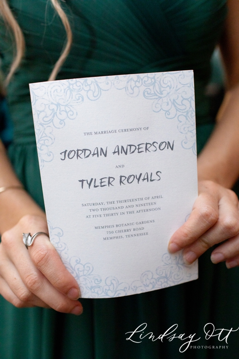 Photographer Lindsay Ott Photography | Planning & Coordinating Katie Upsomb | Venue Memphis Botanical Gardens | Floral L & Jay Productions | Catering Paradox Catering | Cake Frost Bake Shop | Makeup Makeup by Kendrick | Hair Juve Salon | Gown Low’s Bridal | DJ/Band Gary Gowen Group |