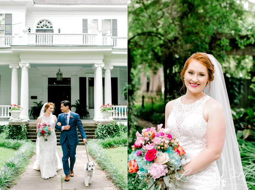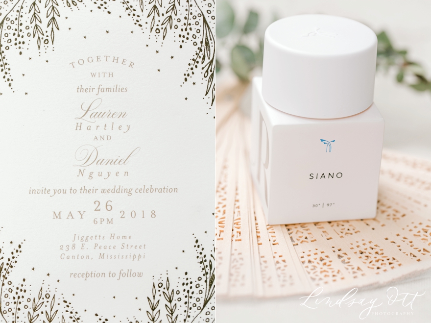 The Jiggett’s Home proved to be the perfect wedding venue for Lauren & Daniel to tie the knot. Located near Canton’s historic square, the outstanding features of this vintage home are its beautiful oak floors, mahogany grand staircase & large wrap around porches. Their ceremony took place on the back lawn under a gorgeous arch while being surrounded by their family & friends from all over the world. The couple opted to do a First Look, which is where they take a moment to see each other prior to the ceremony. This allows up to have plenty of time & natural light for photographs. It also allows the day to flow smoothly, which everyone appreciates! While rainclouds surrounded the area all day, it somehow skipped their wedding, for which we are so thankful. It proved to be the perfect wedding day.